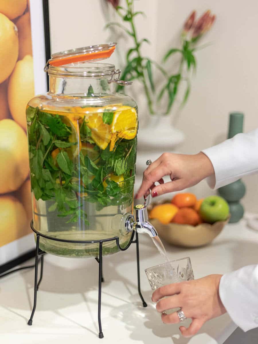 Per persoon kan je een koffie/thee/sweets arrangement afnemen. Naast onbeperkt koffie & thee, staat er bij binnenkomst een plateau met sweets op tafel. Met een heerlijk assortiment van mini Tony Chocolony, verse macarons en vers fruit. Daarnaast een gevulde Kilner Karaf infused water met vers fruit en San Pellegrino op tafel!